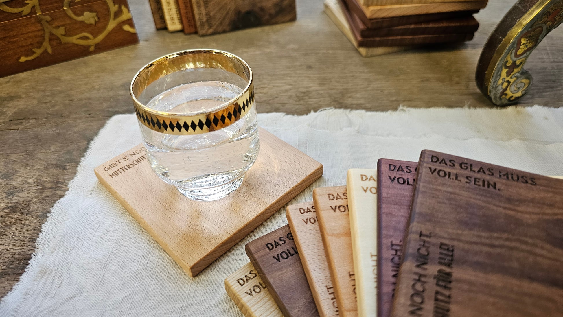 Holzuntersetzer im 2er-Set. Dieses handgefertigte Set entsteht in der Werkstatt von Johanna Röh in Kooperation mit Maira Kemme und trägt die gelaserte Botschaft „Das Glas muss voll sein“ – eine klare Ansage: Wir wollen keinen halben Schutz, keine halbe Absicherung, keine halbe Gleichstellung. Mutterschutz muss vollumfänglich gelten – auch für Selbstständige. Punkt. Aus echtem Holz, mit echter Haltung. Die Untersetzer eignen sich für Wasser, Kaffee, Tee oder jeden kleinen Mutmach-Moment und erinnern dich – und alle an deinem Tisch – täglich daran, wofür wir kämpfen: Für ein System, das hält. Für ein Glas, das voll ist. Für Mutterschutz für Alle.