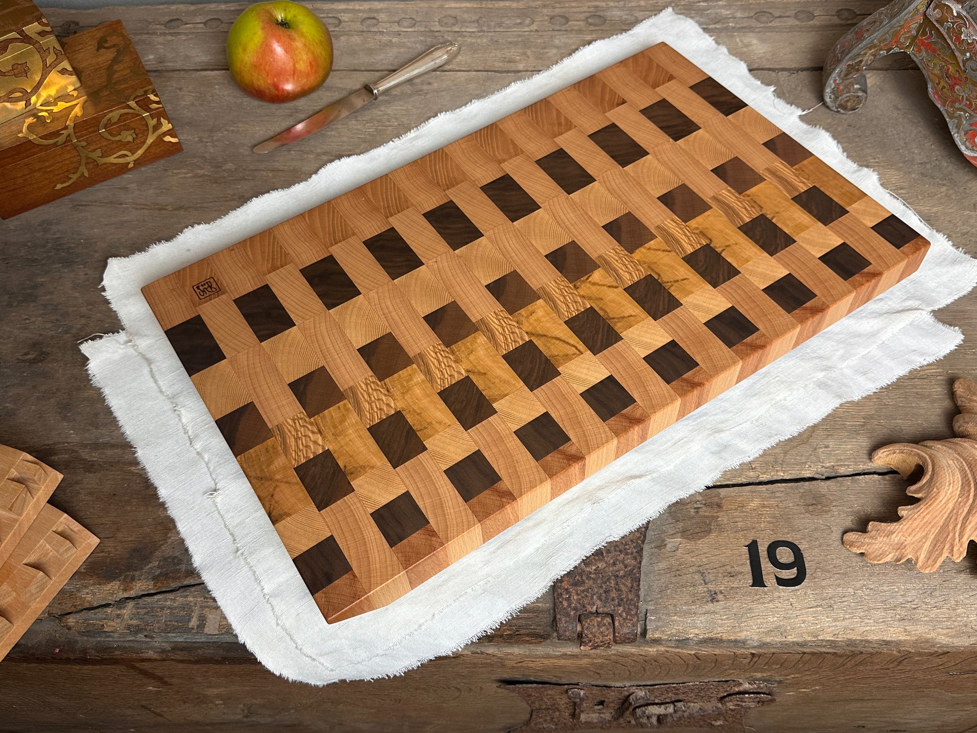 #19 Hirnholzschneidebrett ohne Gravur - Buche, Esche, Nussbaum und Kirsche