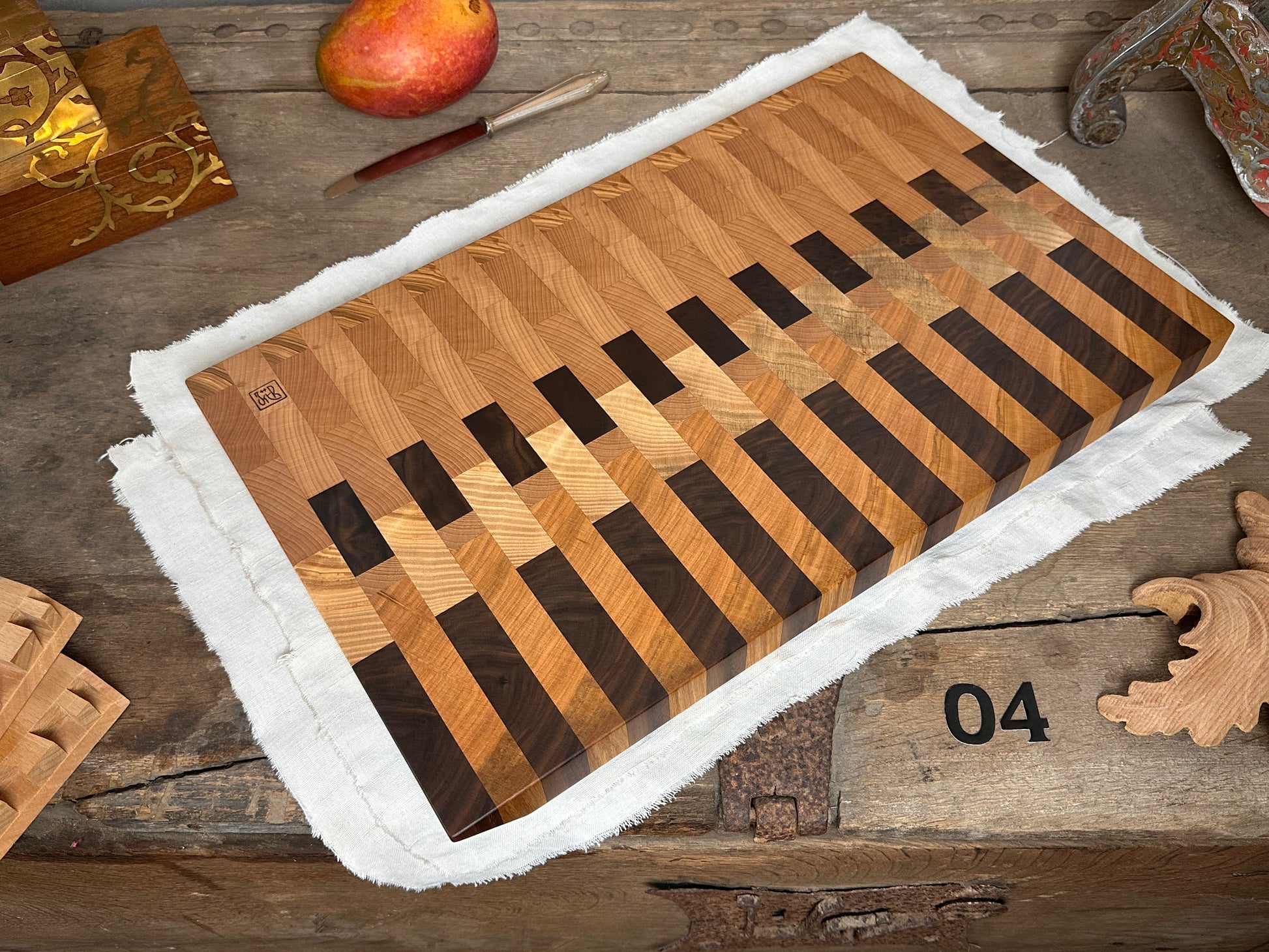 #04 Hirnholzschneidebrett ohne Gravur - Buche, Kirsche, Nussbaum und Esche