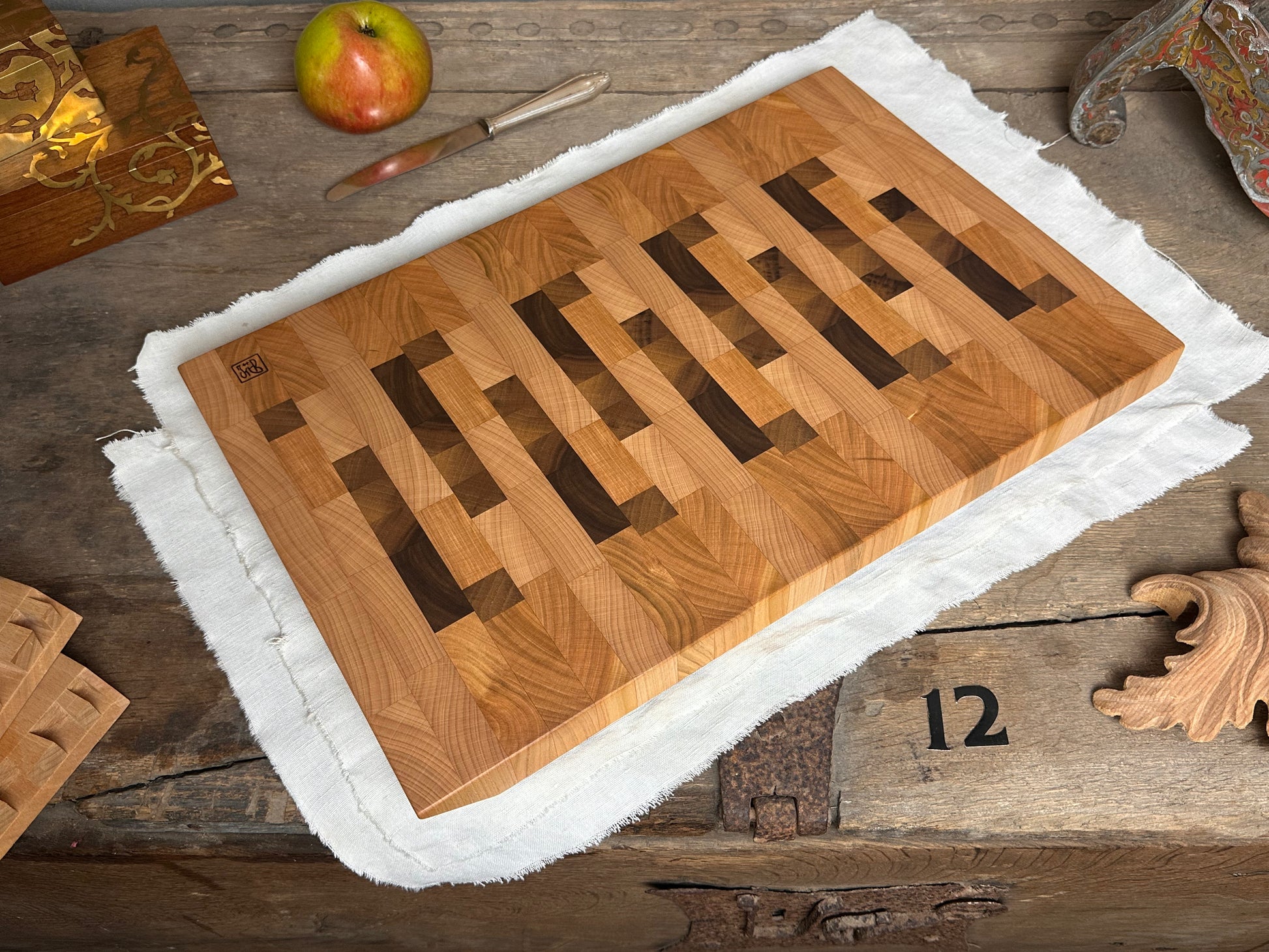 #12 Hirnholzschneidebrett ohne Gravur - Buche, Kirsche und Nussbaum