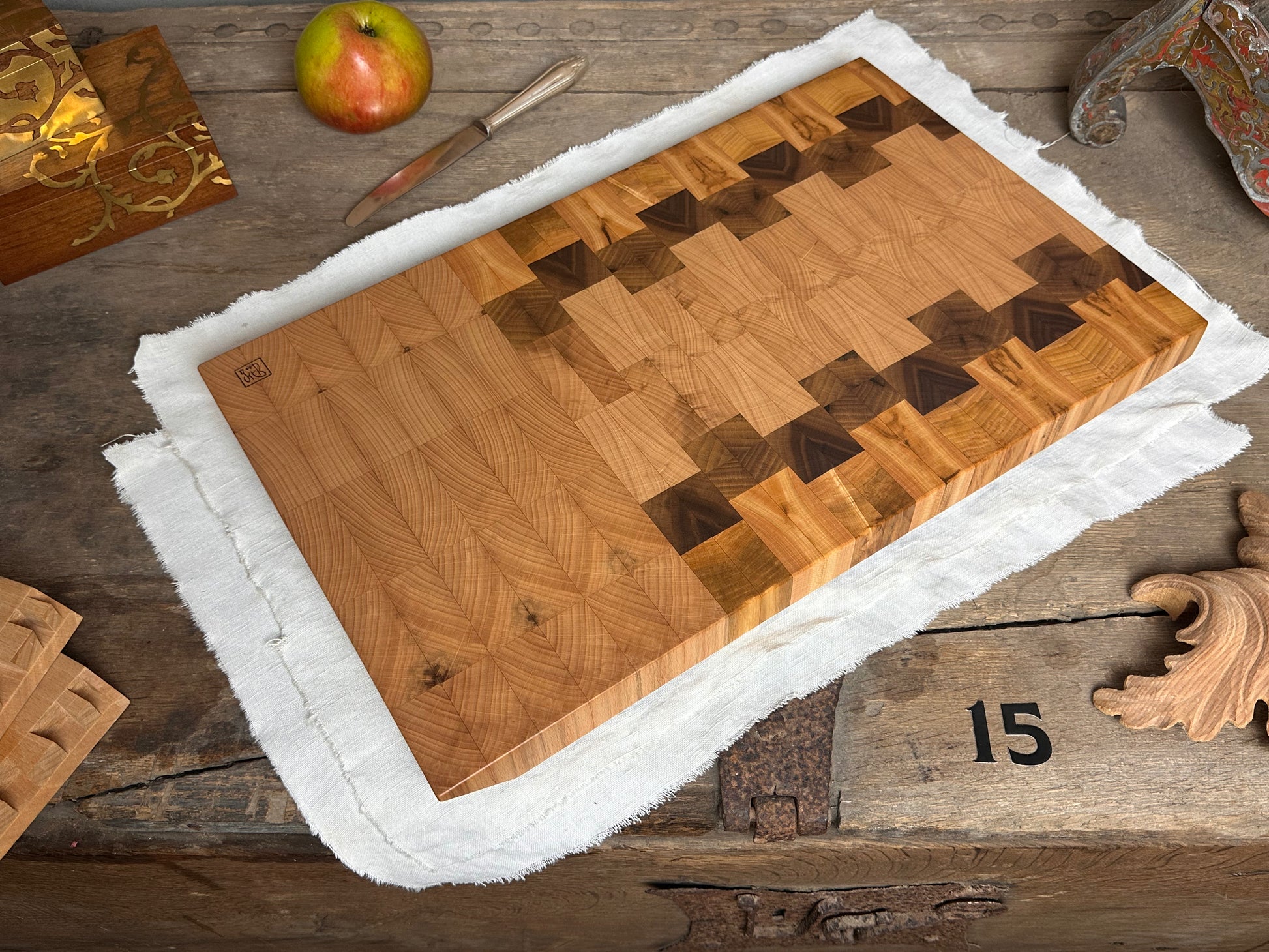 #15 Hirnholzschneidebrett ohne Gravur - Buche, Kirsche und Nussbaum