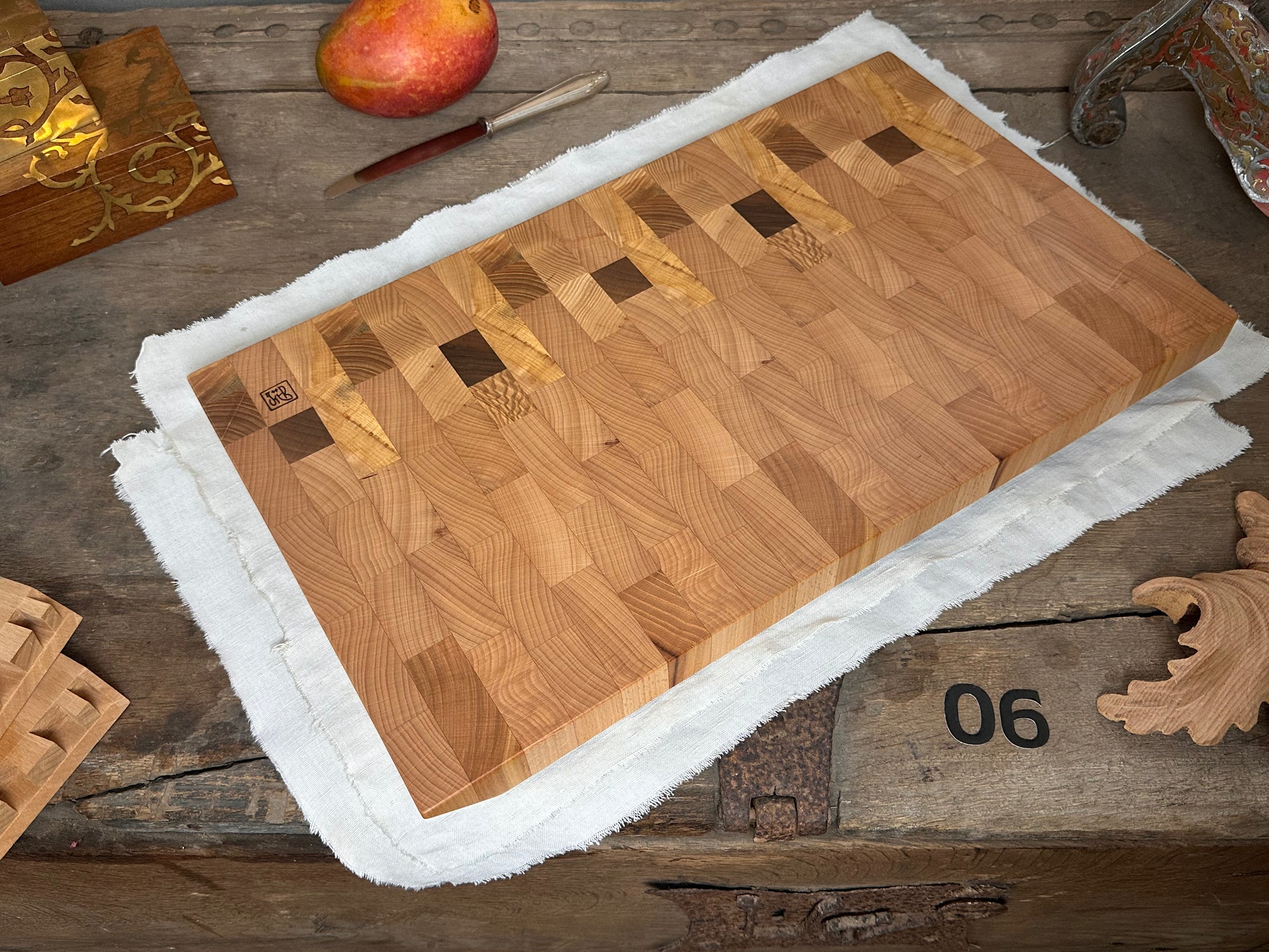 #06 Hirnholzschneidebrett ohne Gravur - Buche, Nussbaum und Esche